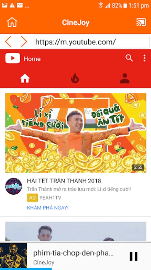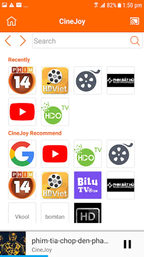CineJoy application on mobile phones help the users can watch movies on the large screen with just one button touch. You can watch your favorite movies without having to go to the movies with the picture and sound are not inferior as in theaters.