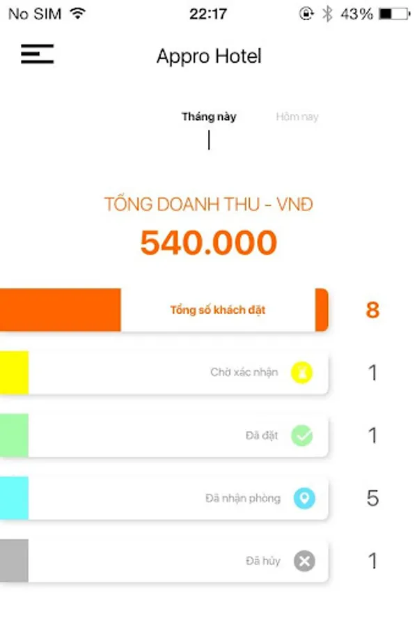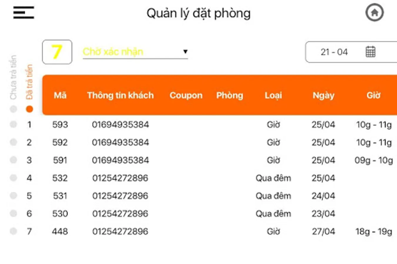 Go2Joy Partner is an application on the mobile phone for hotel partners of Go2Joy. The application supports hoteliers to track activity and managing reservations easily, conveniently by continuously updated revenue and status of reservation at the hotel, informed as soon as the customer transactions, function confirm the booking, check-in done directly on the application, Go2Joy Partner