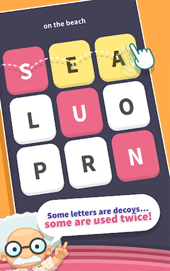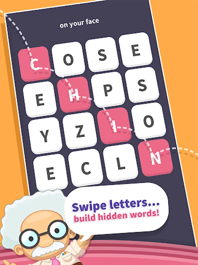 Help the WordWhizzle Professor and become the top word search expert by finding hidden words in a grid of letters... Swipe letters up, down, diagonally, and across to build words as you and the Professor tackle the ultimate vocabulary challenge!