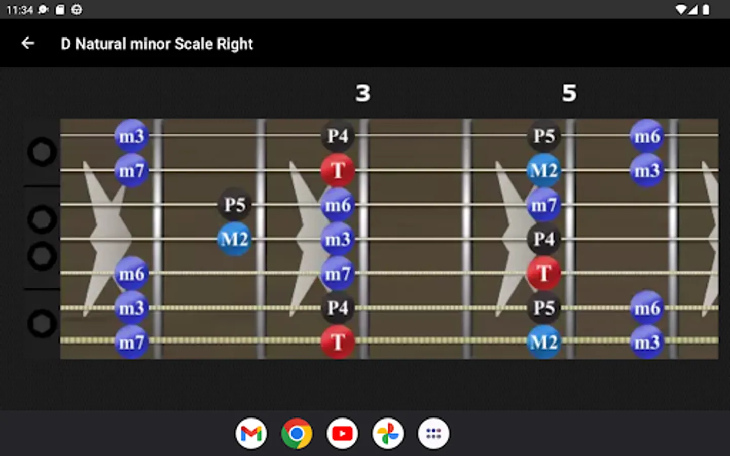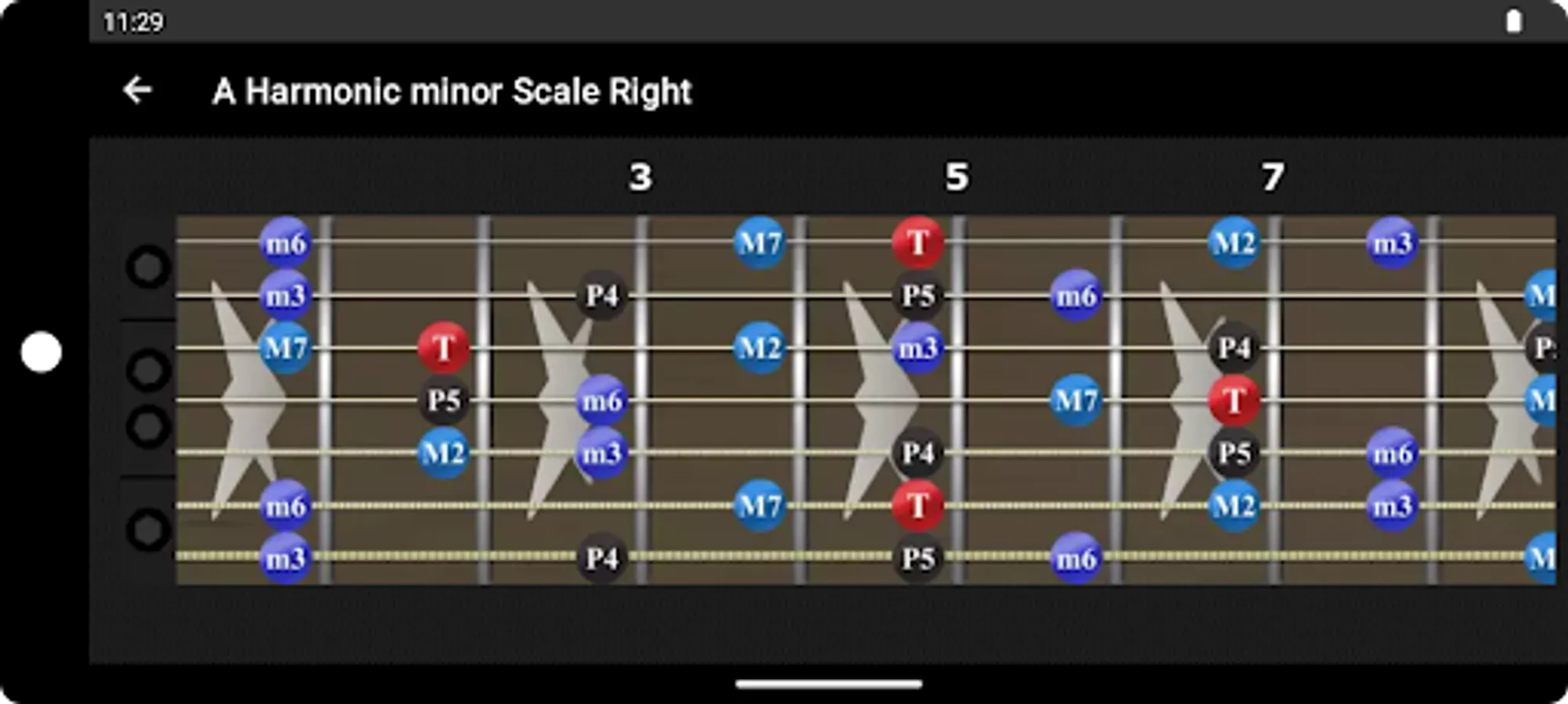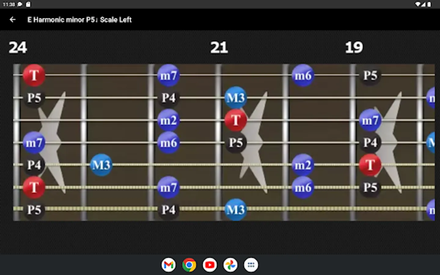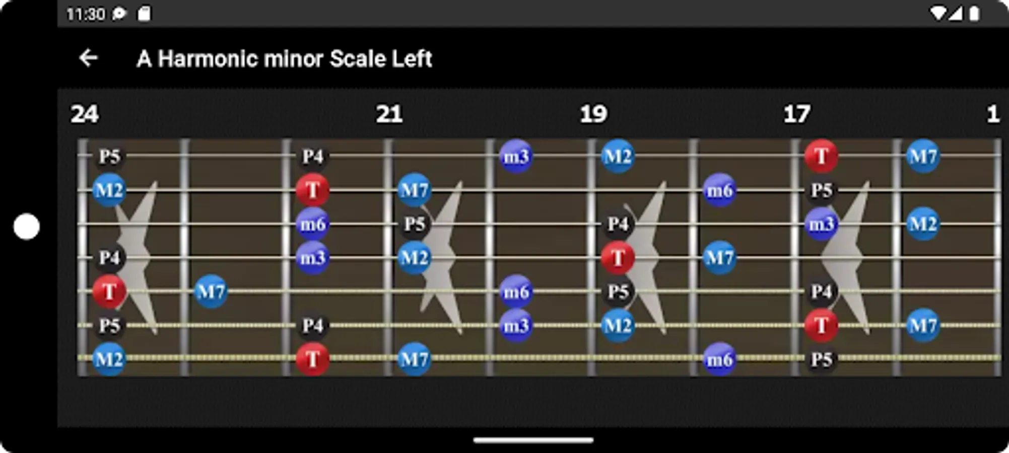 A position icon with degrees such as minor, major, and perfect tones is displayed for each tonic (key note), so you can learn the scale while understanding the constituent notes.