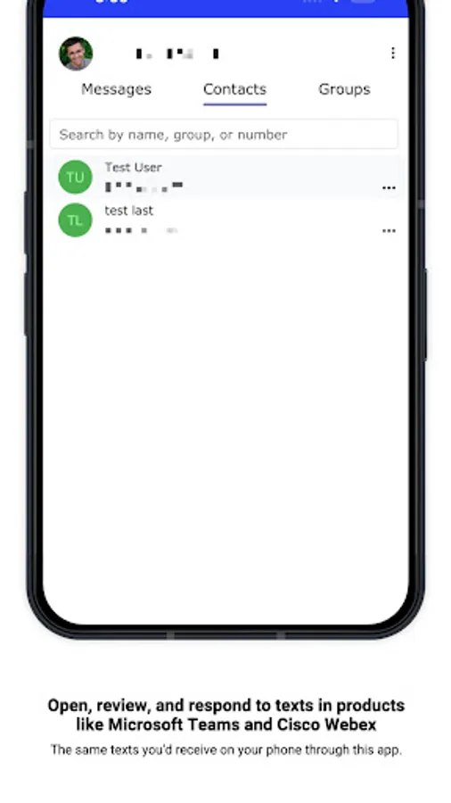 Open, review, and respond to texts in products like Microsoft Teams and Cisco Webex - the same texts you'd receive on your phone through this app.