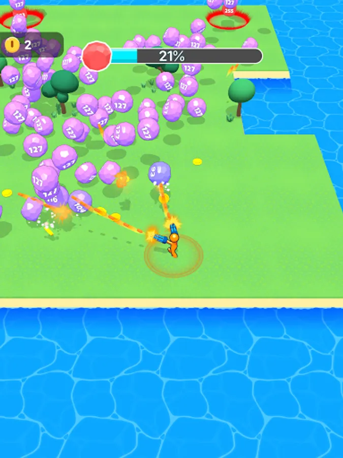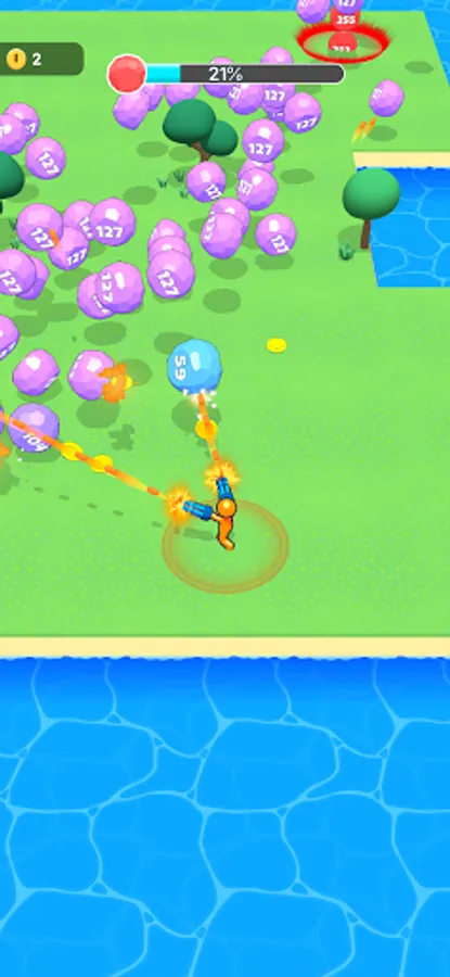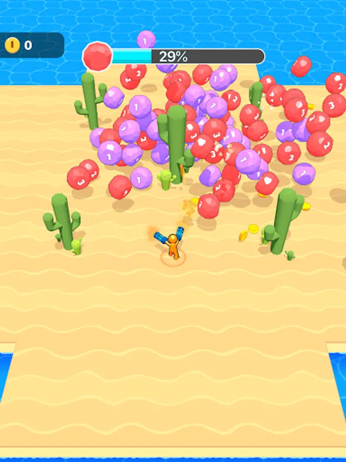 Survive to the arena by avoiding the evil balls and shoot them!