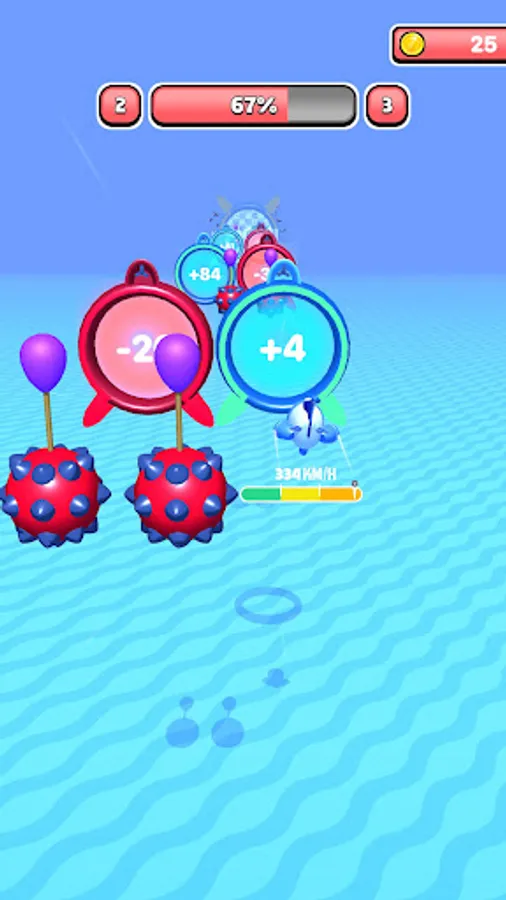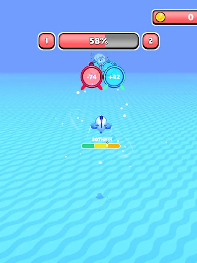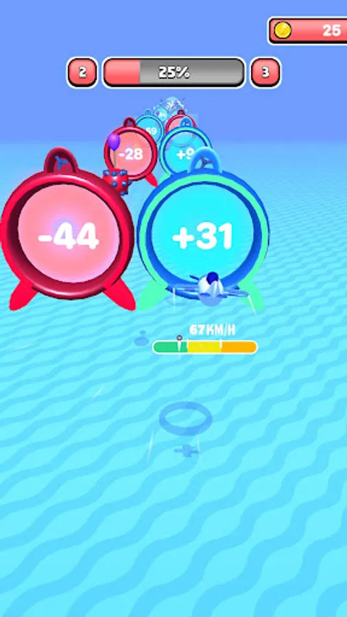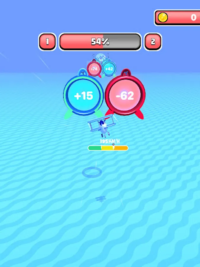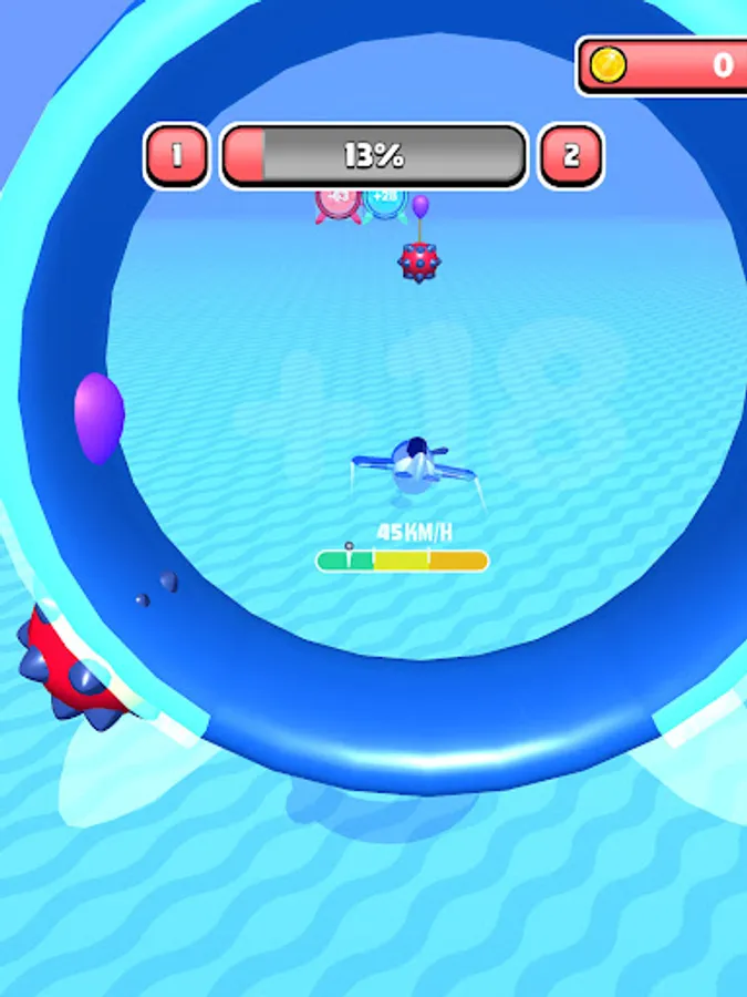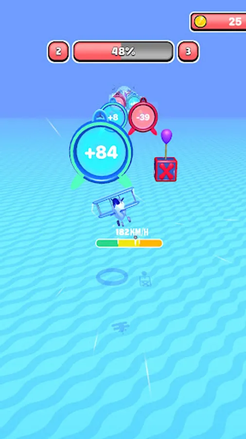 Go through the right portals to gain speed! Beware, if you go under a speed of 0, you will crash!