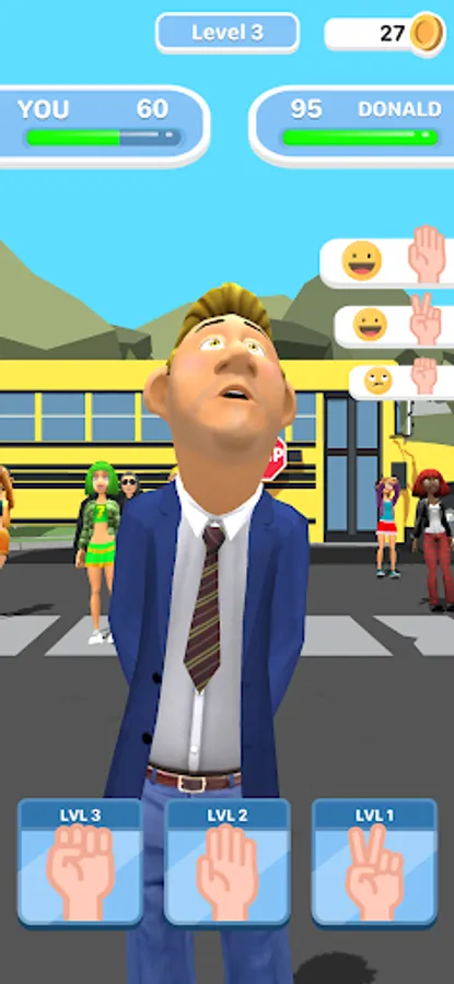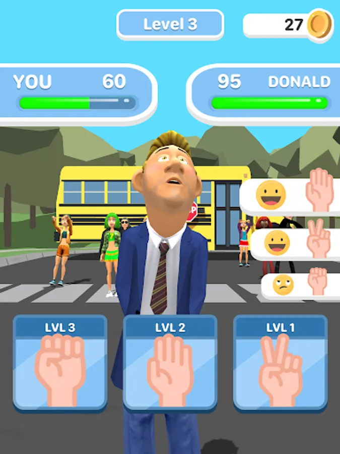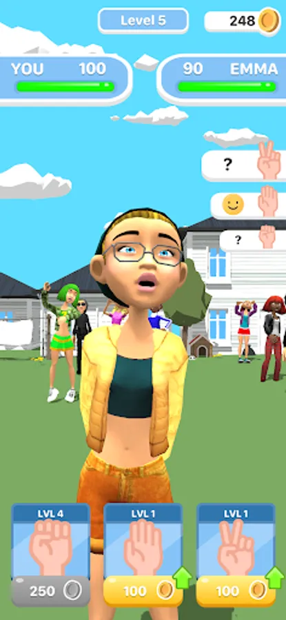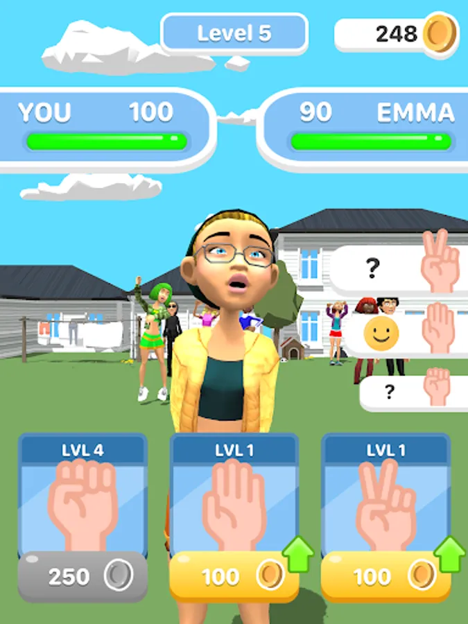 Do you think you're the best at Rock Paper Scissors? Prove it and participate to the funniest competition of all time! Try to be smartest than your opponents and give them some slaps! Upgrade your moves to be stronger and prove that you are the best of the world...if you can.