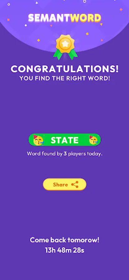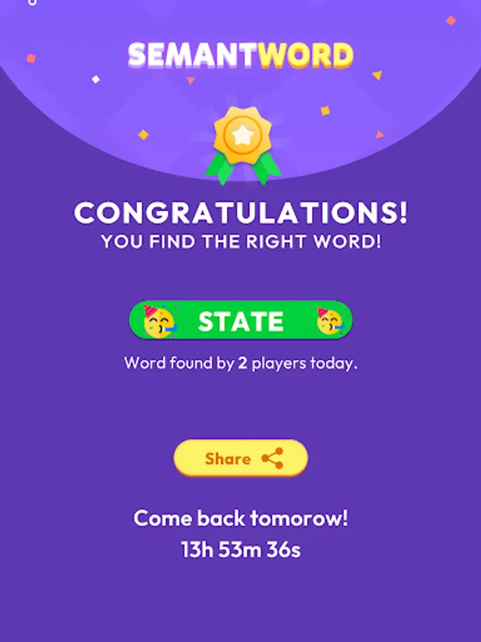 Use the similarity meter to help you out. If the definition of the word you have to find is close to the word you typed, the similarity meter will have a high score! If this score is 100, you won!