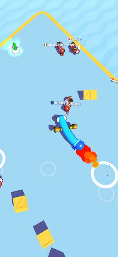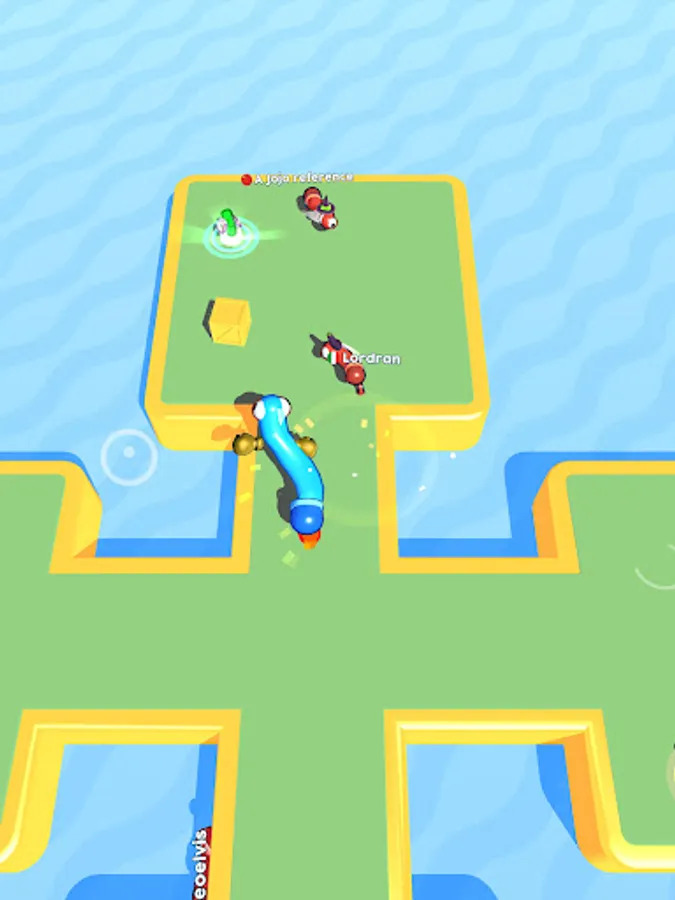 Move your avatar to slap ennemies, wiggle around and push them into the water, score goals and demolish blocks in this game of games !
