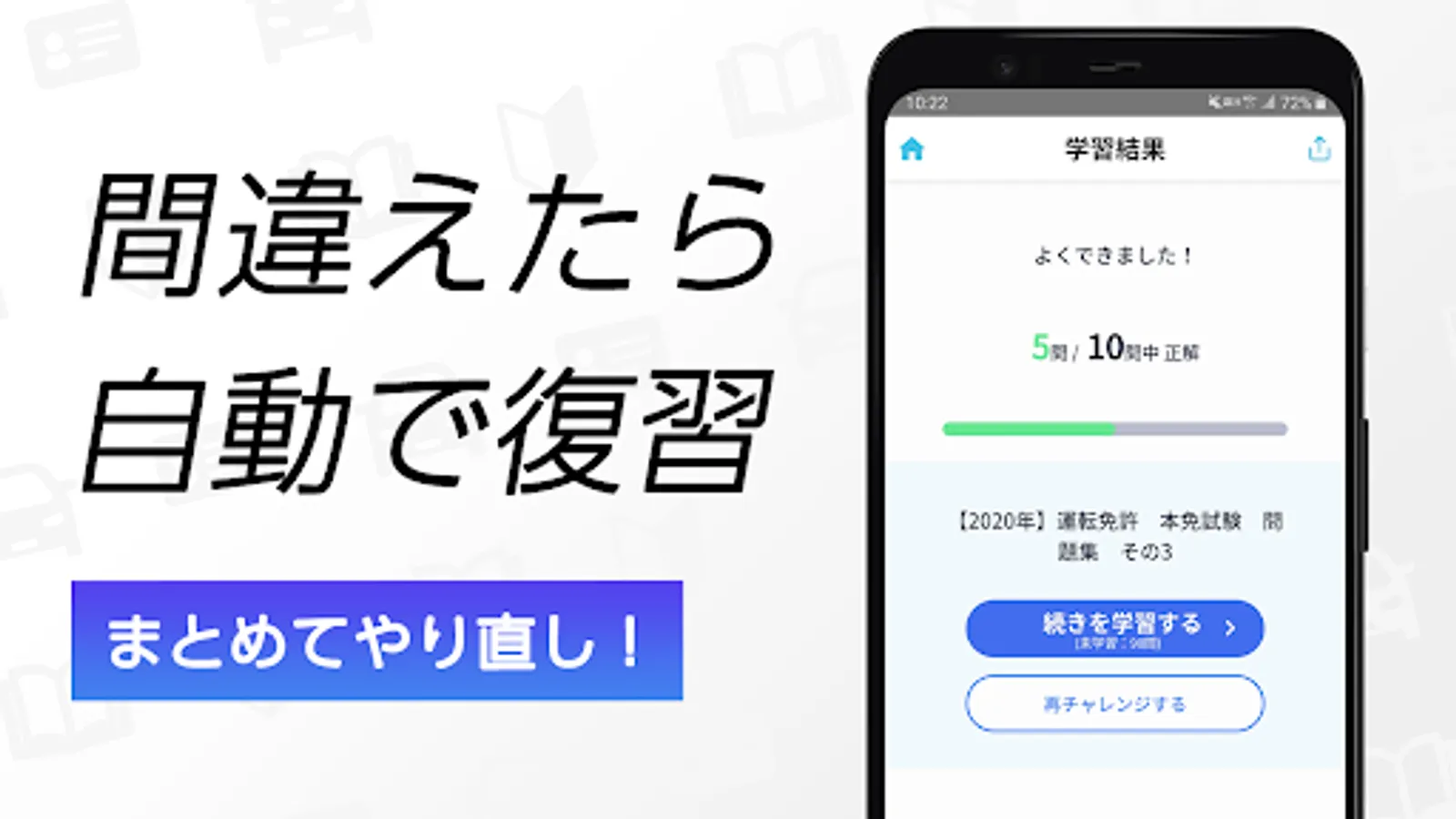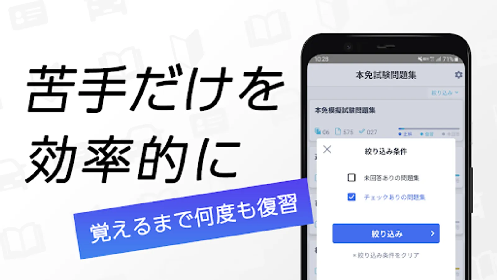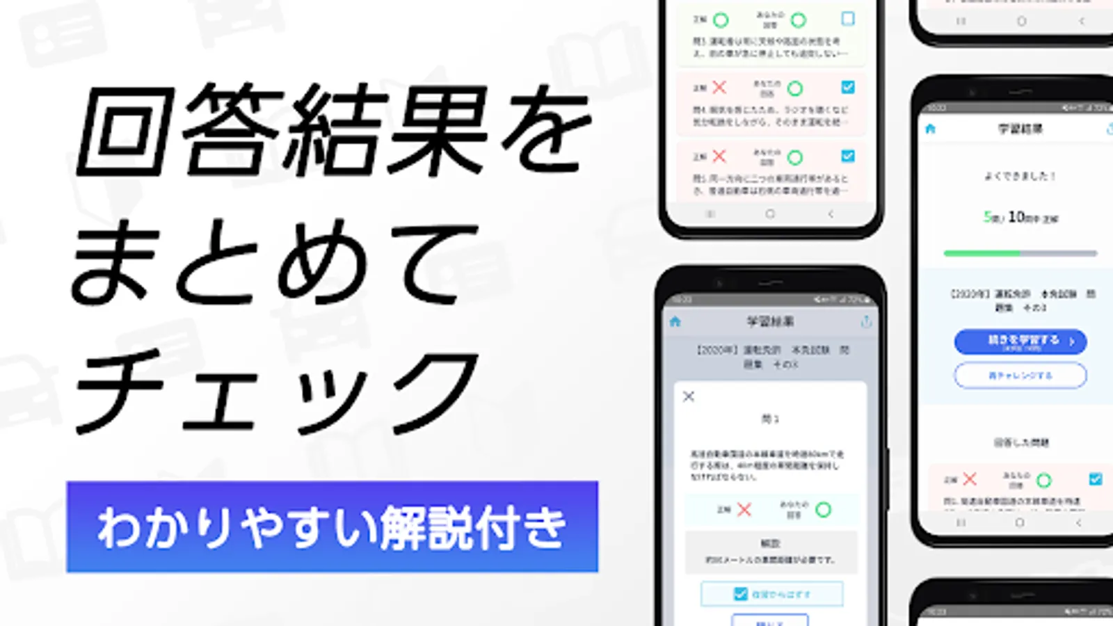 It is a free app that allows you to study past exam questions and mock exams at any time with a single smartphone.