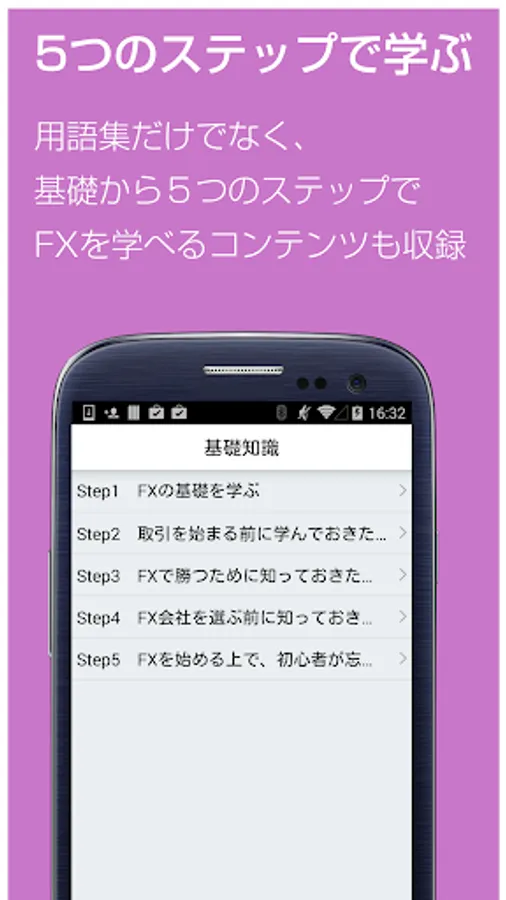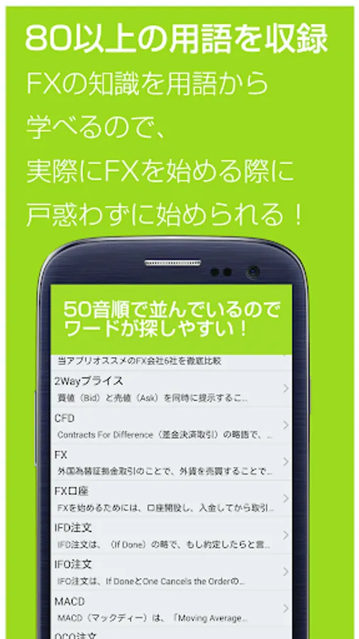 このアプリではFXに関連する用語をわかりやすく解説した無料の辞書アプリです。