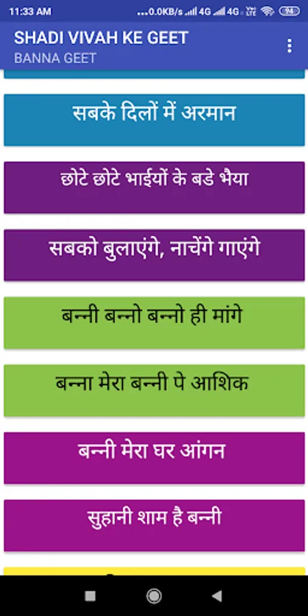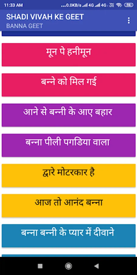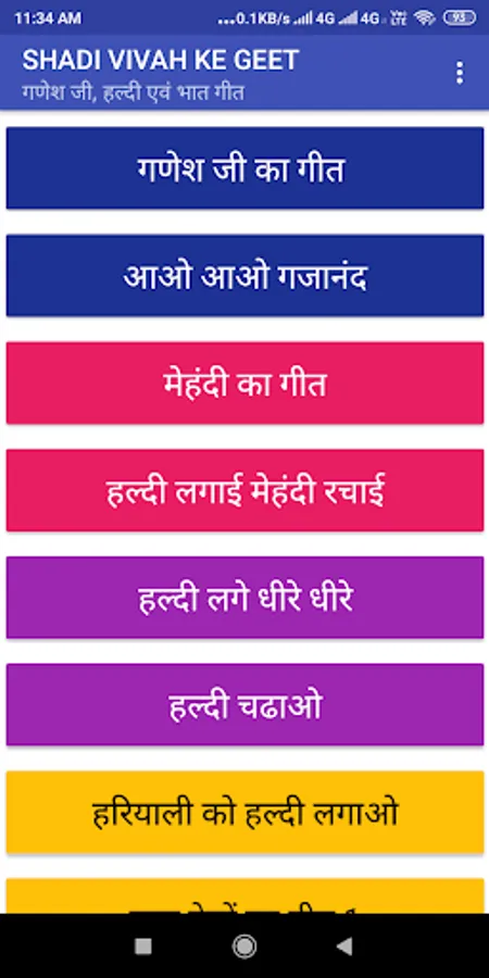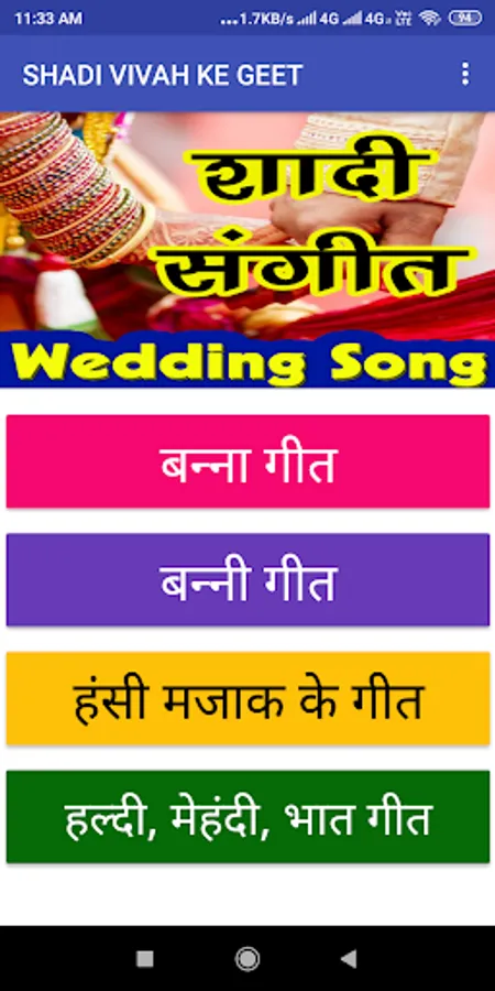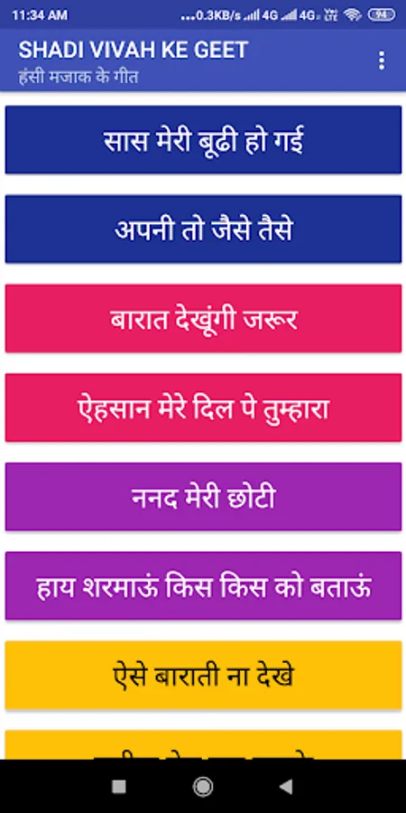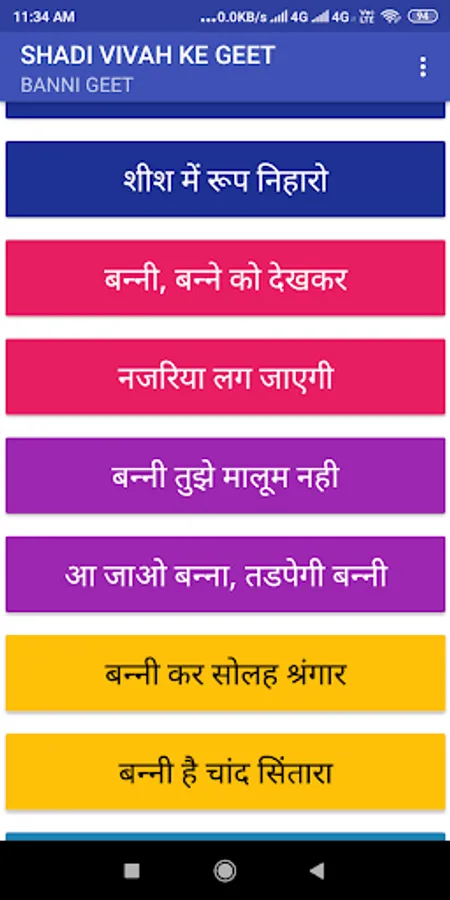 This app is designed to be familiar and learn songs which are sung on occasion of Vivah Ceremony. All songs are with their lyrics and music as well. You will get the following songs in our App.