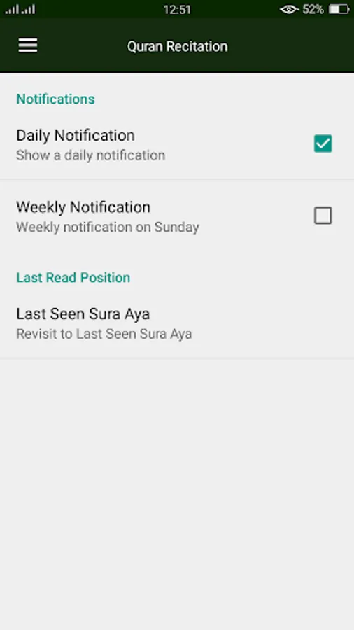 Last Read Position:- Last read position functionality is provided for the people who recited Quran, it will let you show you exactly where you have stopped Quran recitation last time.
