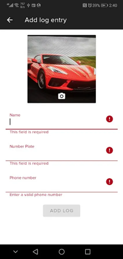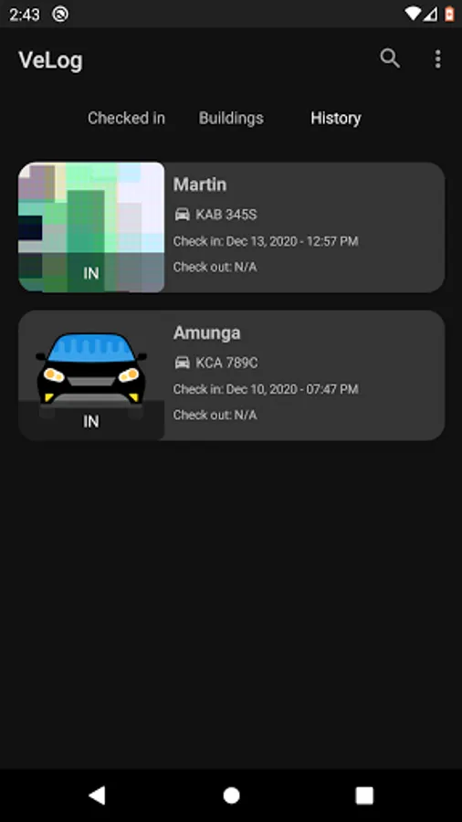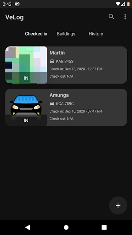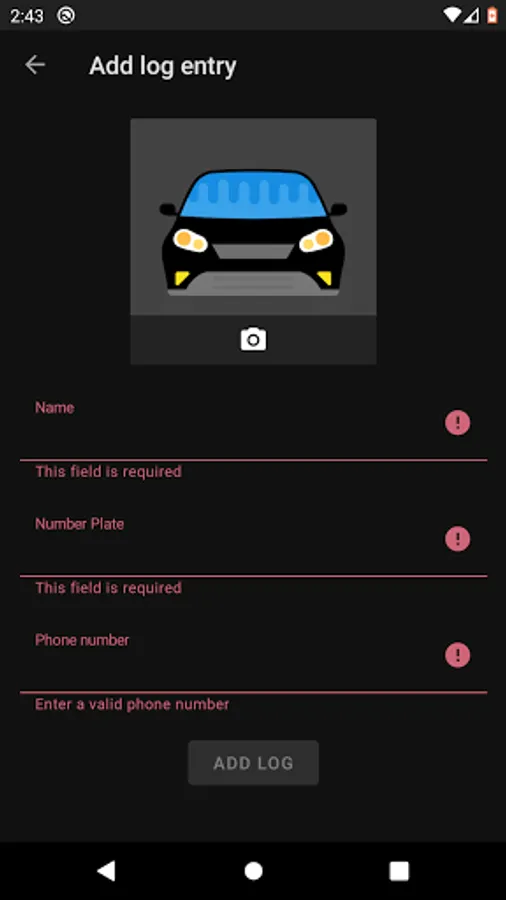 This is an app meant for logging visitors with vehicles entering a building / facility / campus