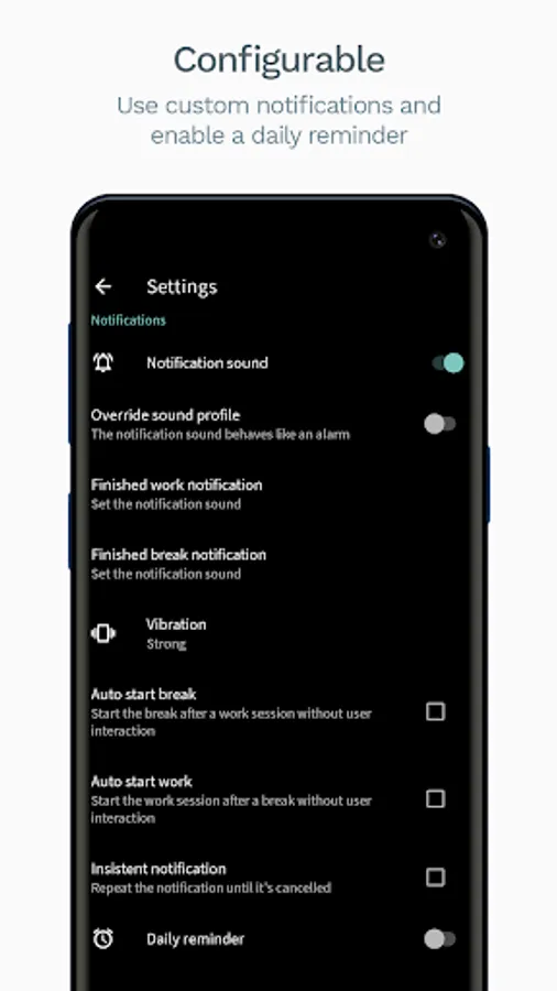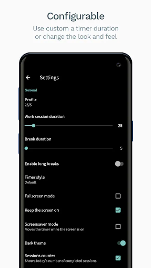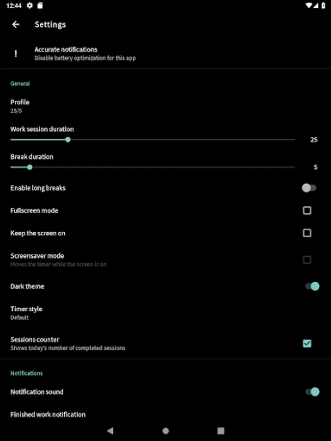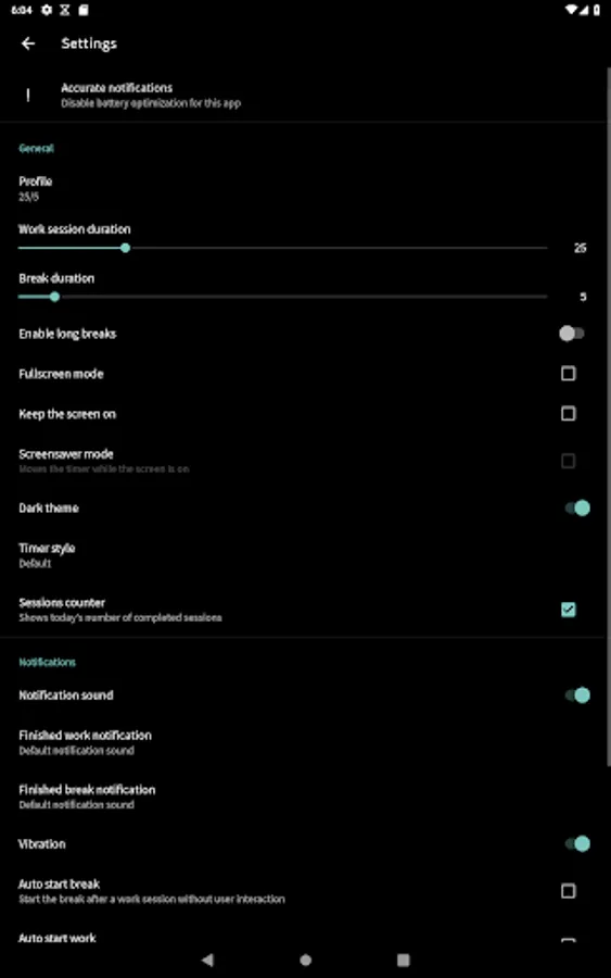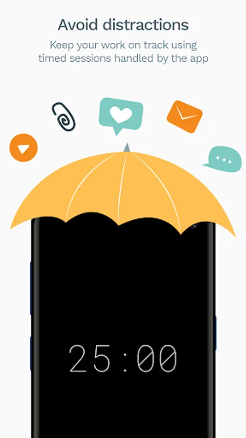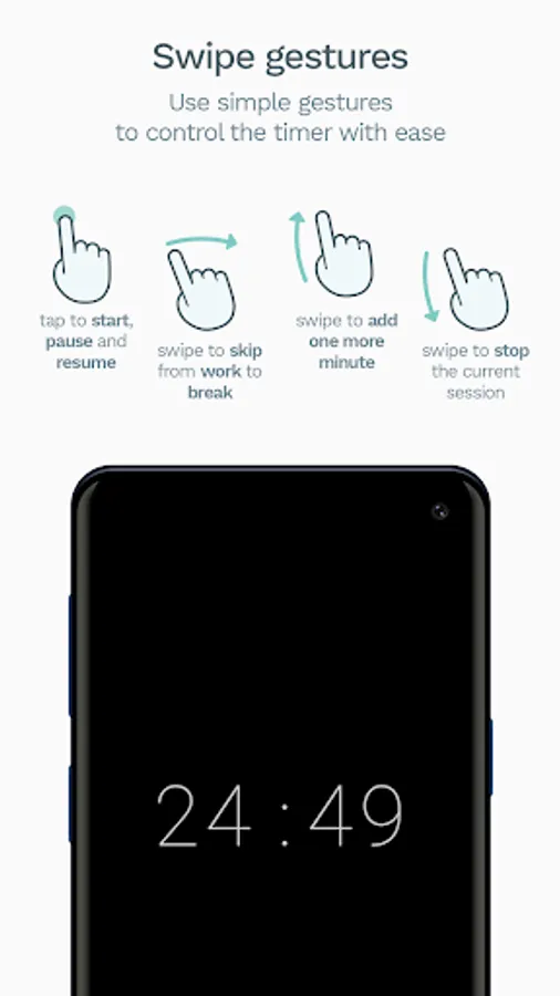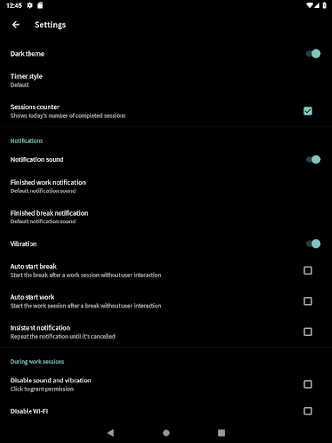 • Disable sound and Wi-Fi connection(until Android 10) during the work sessions