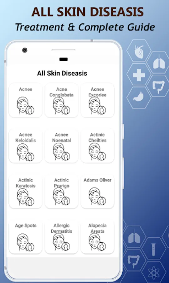 Skin Diseases & Treatment some diseases can be naturally cured, e.g, acne and pimple. You can use an acne remover or cleanser for that work. Other diseases e.g, cancer, you need a scanner once symptoms show. This diseases can cause mental disorder e.g, vitiligo or skin cancer. This app help dermatology students and researchers understand clinical dermatology more. On Clinical dermatology app, you will find detailed explanations of different skin diseases listed below with high quality picture illustrations.