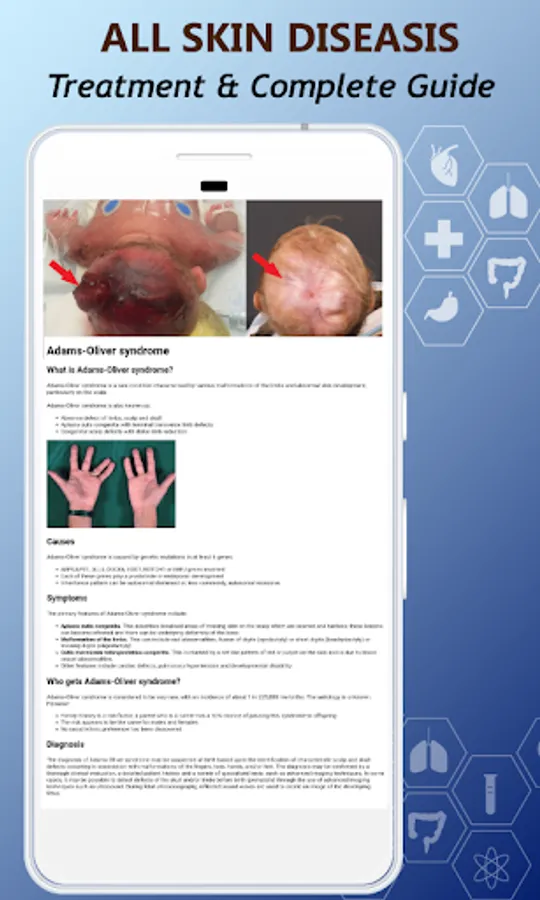 Skin Diseases and Treatment app, that provides info about Skin care, symptoms, diagnosis, prevention measures, causes and treatment. Keep in mind this Skin Diseases book should only be used for information purpose not as a medical advice book.