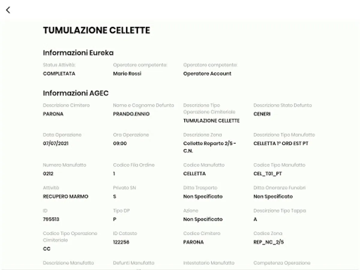 Cloud computerized system suitable for the management of cemetery services by the company eureka srl.