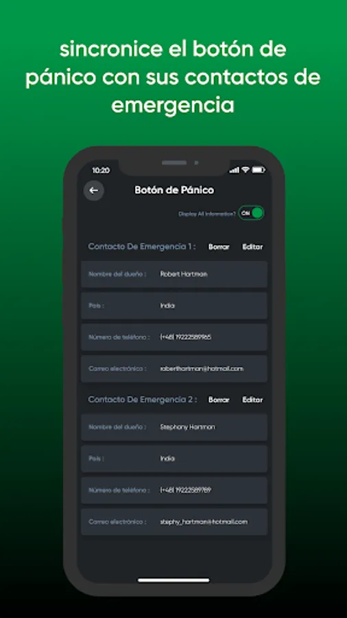 - Configuration of Emergency contacts, Panic Button installed on your motorcycle.