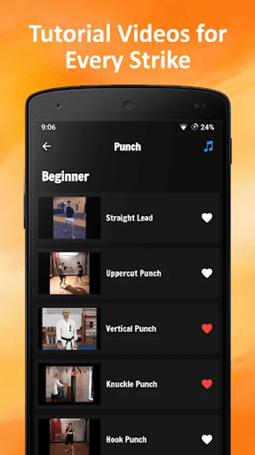• Tutorial videos for every strike, and how to perform it step by step.