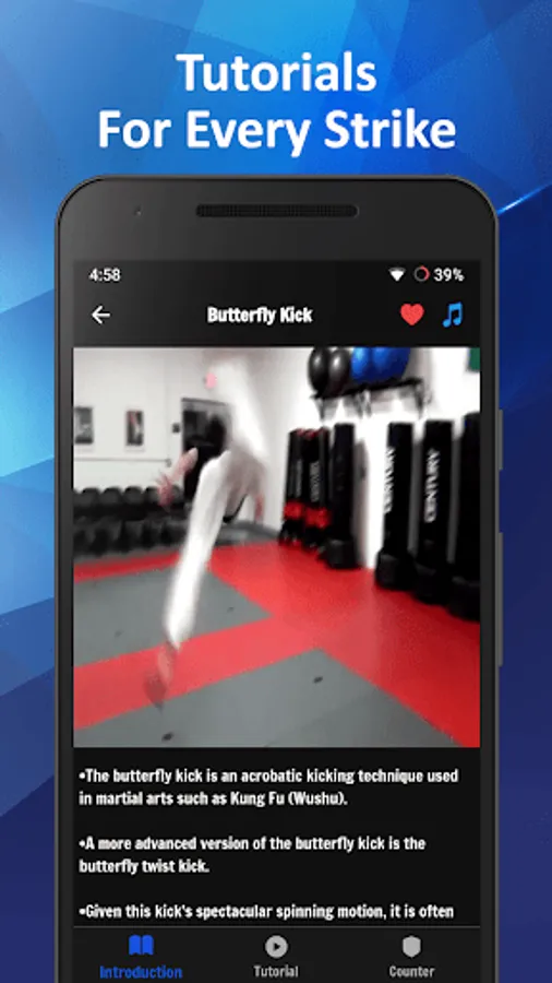 This taekwondo app and its training routines focus on the attack, speed and strength of the legs and feet, the workouts strengthen the legs, buttocks, calves and abs mainly.