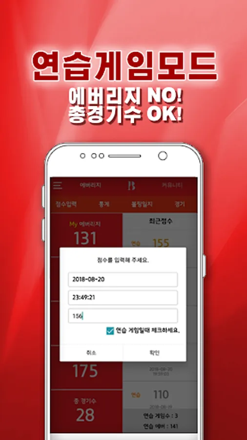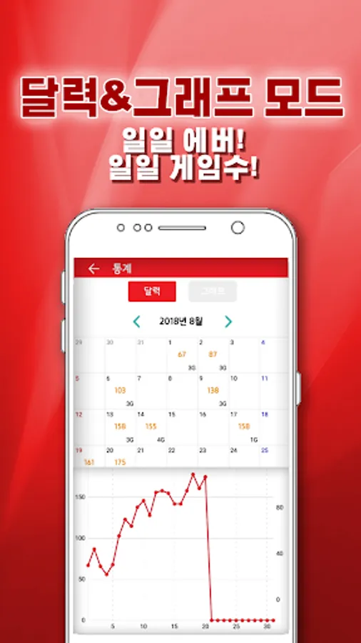 - Statistics (calendar) / statistics (graph): number of games and average (bowling score) visual representation