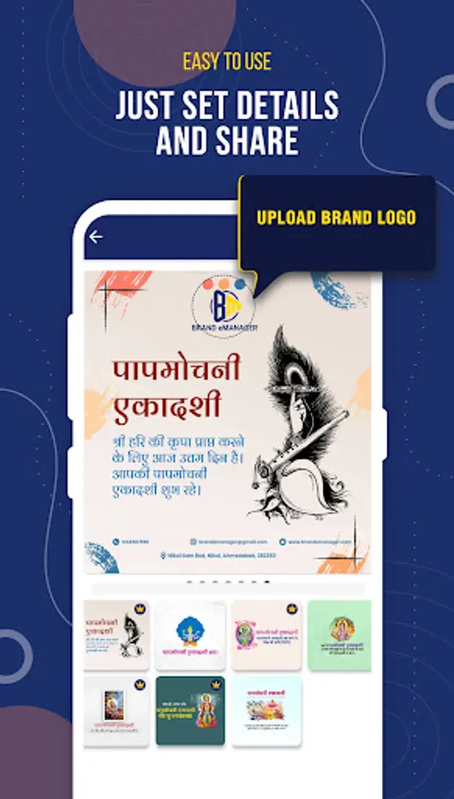 Brand eManager is an all-in-one branding platform which empowers you to automate your business branding for 365 days with a 360 degree branding solution. Create easily! All-in-one Indian Festival & Day Images, Business Posters, Marketing Banner, Greetings, Business Marketing Images & Daily Post for your Business Brandings