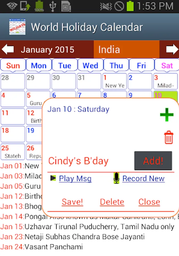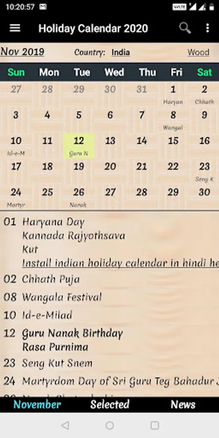 The app will also remind you all Indian Holidays with mobile notification so you can never skip any important Indian Festival. Please send me an email if you have any feedback or technical problems and I shall make immediate correction. The holiday informations are taken from various sources on internet. We encourage you to cross-check the holidays information.