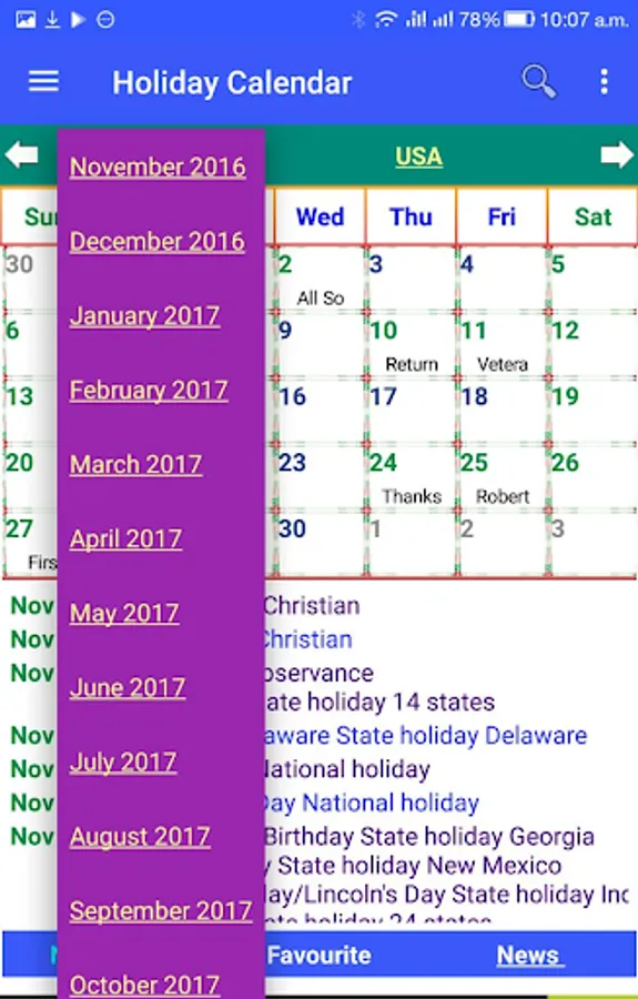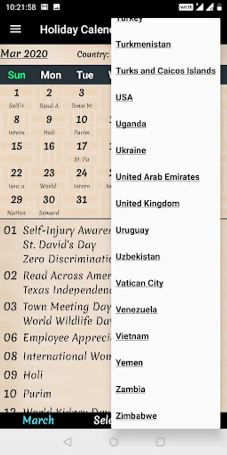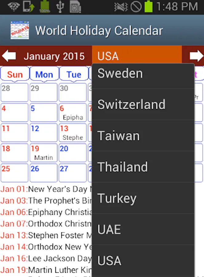 This is a global holiday calendar, where user can choose their own country and see the coming holidays from various countries like USA, India, Malaysia, UK, Canada, Russia, Philippines, China, South Africa, UAE, Singapore and many other countries.