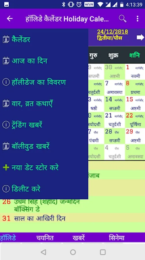 Calendar is the Indian Holiday Calendar 2023, हॉलिडे कैलेंडर 2023, includes religious festivals, bank holidays, school holidays, hindu calendar and national holidays in hindi language. It can be used as Hindu calendar, Muslim calendar, Sikh calendar, Christian calendar etc.