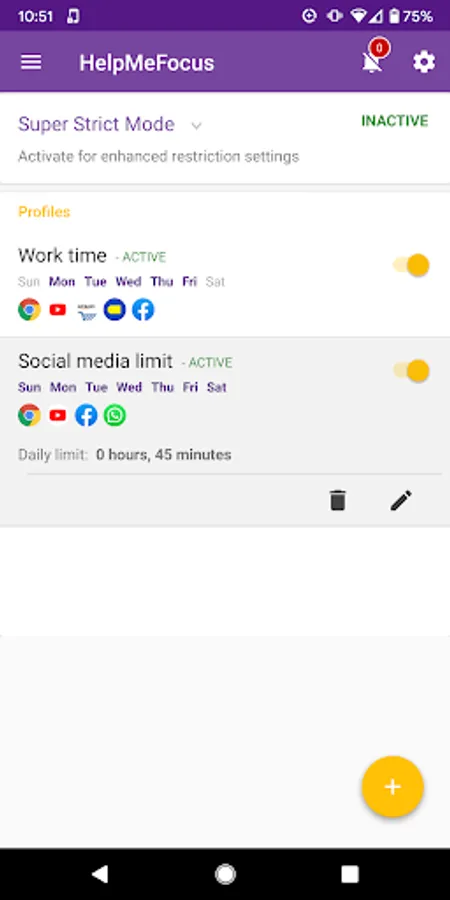 • Uninstall Prevention to stop you from HelpMeFocus app uninstallation when you're desperate to use blocked apps.