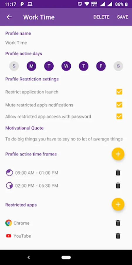 • Best App Block- Set motivating quotes to inspire you every time you try to access a blocked app