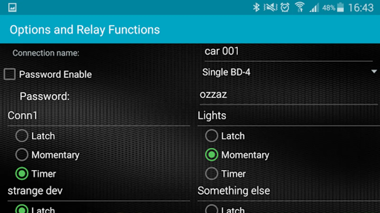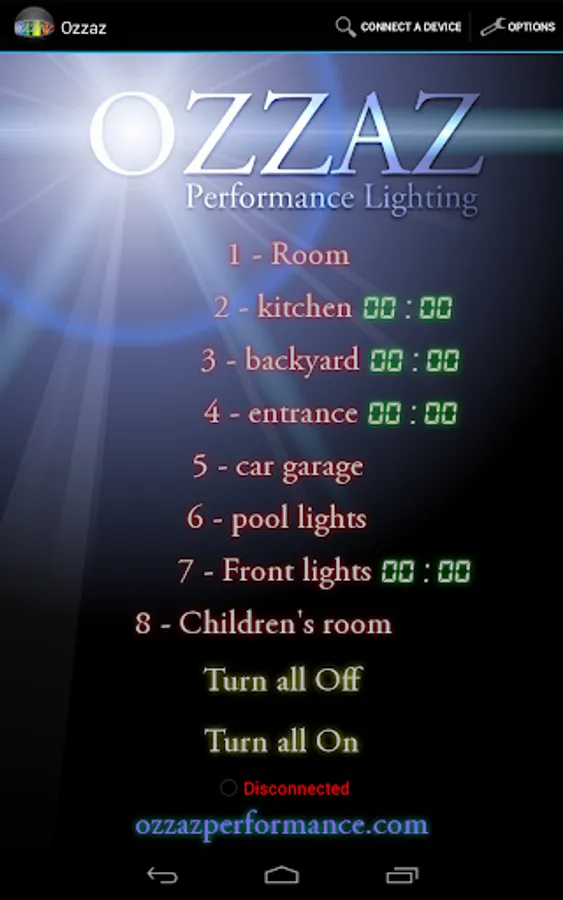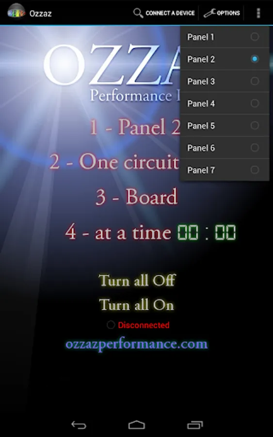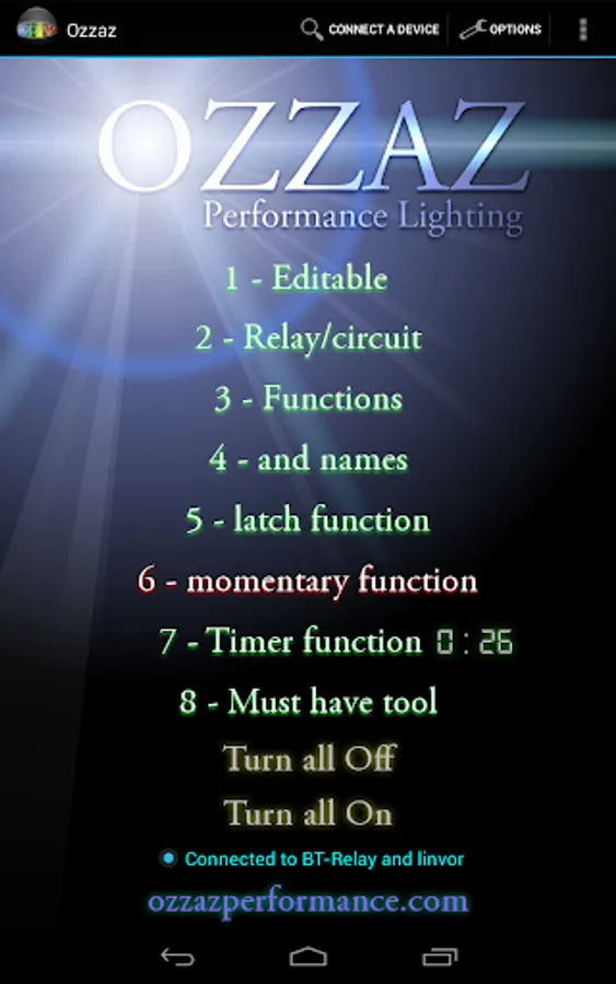 This app allows you to control up to 28 Performance Lighting solutions through Bluetooth Ozzaz lighting controllers. Set your password and Edit circuits names and functions: