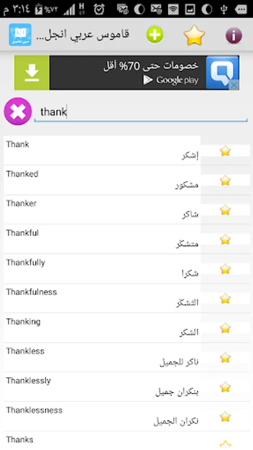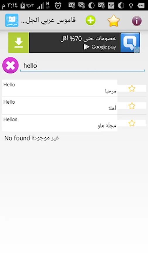 Wonderful interpreter contains more than 185 000 words translated from Arabic into English and from English to Arabic language helps you in your studies