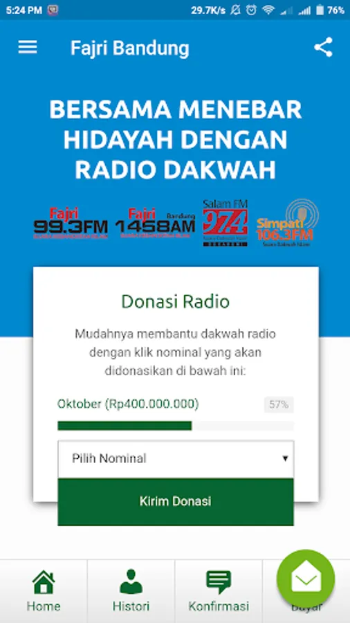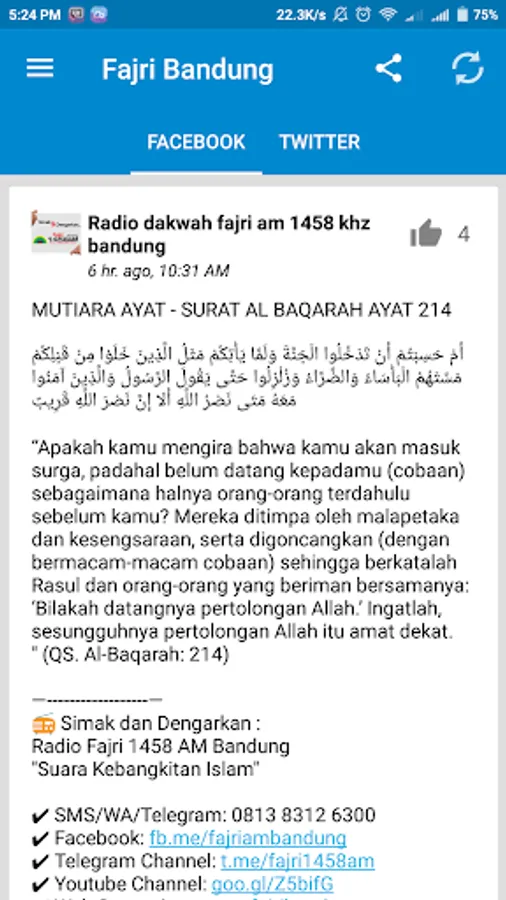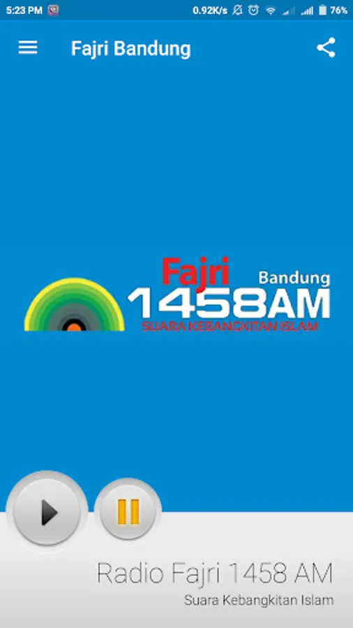 Applications Radio Streaming Radio 1458 AM Fajri Bandung.