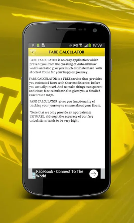 Fare Calculator gives accurate fare price based on distance, amount charged and also gives users a good bargaining power over fellow taxi/auto drivers.