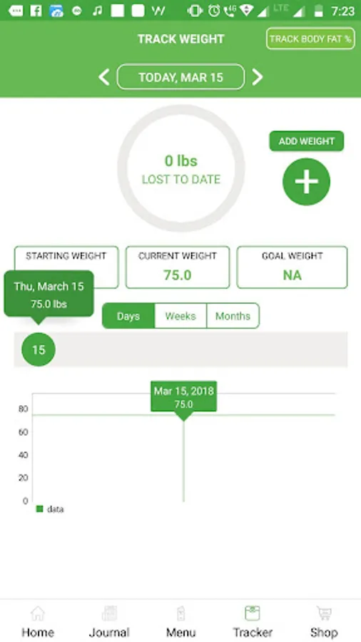 Set your goals and monitor progress with the body weight and body fat percent tracker. By logging progress, you are better equipped to identify obstacles that may be holding you back, and set yourself up for continued success.