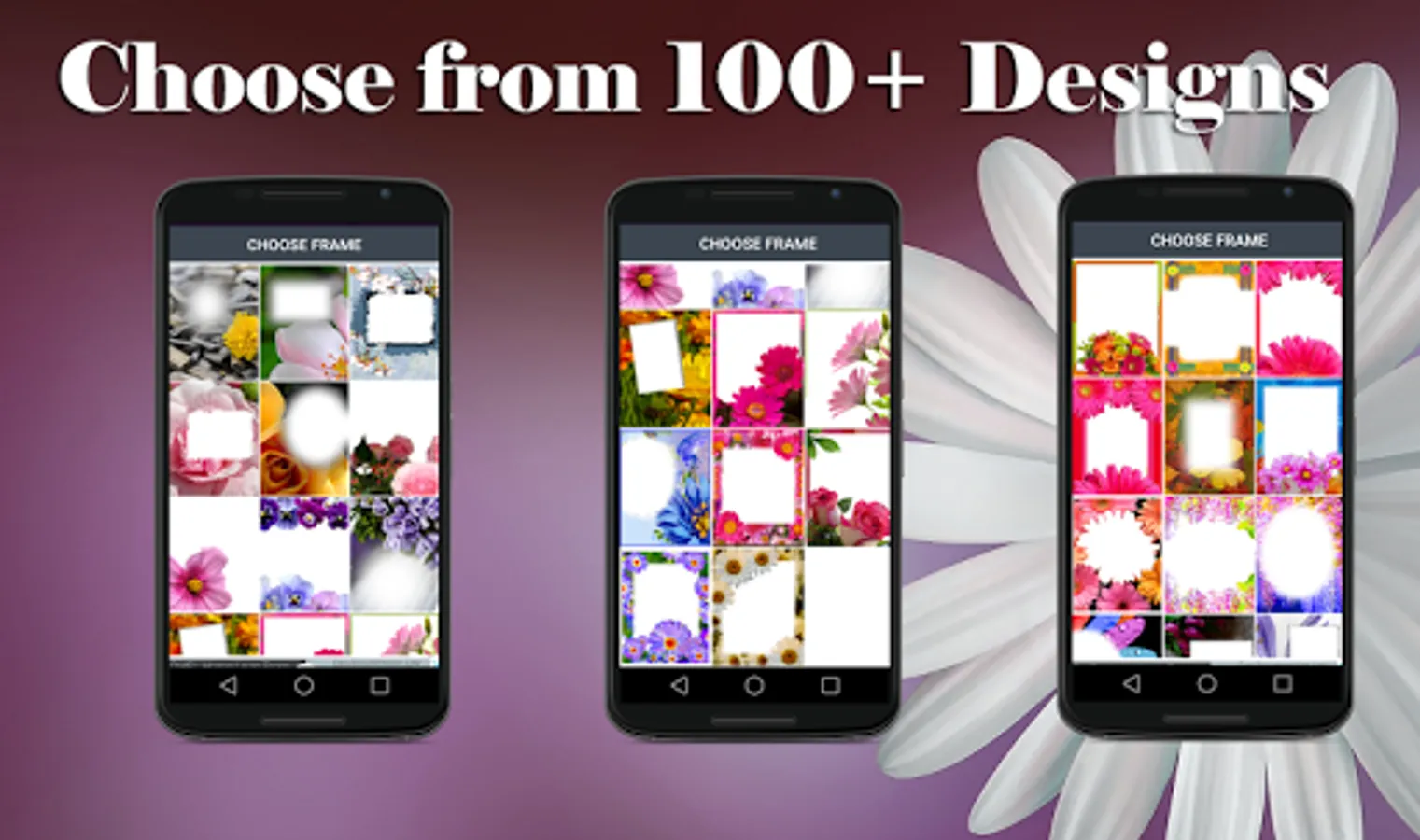 Easily share your edited images on any social networking platform. Perfect Flower Photo Frames app for your android phone with more than 100+ designs to choose from