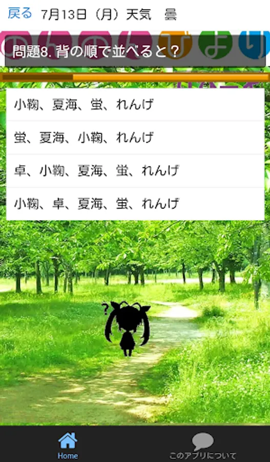 Degree of difficulty of the problem, because it is random, from the countryside novice, until Non'non master, you can enjoy.