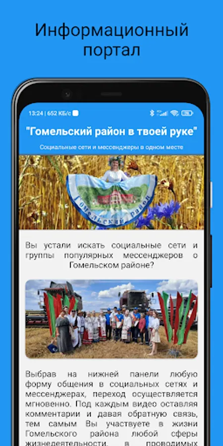 A platform for communication for those who are interested in the Gomel region, start-ups, extraordinary heroes, the development of sectors of the national economy and rural areas, the activities of public organizations, the implementation of civil initiatives through the eyes of a rural resident.
