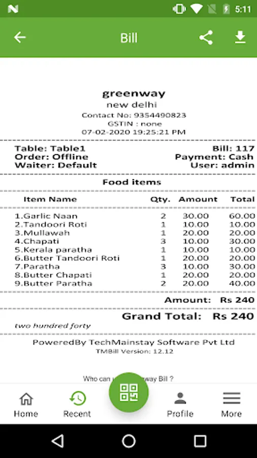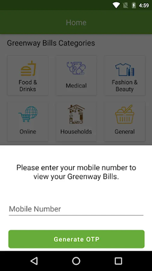 The Greenway Bill Application helps you to receive all the bills (generated by any shop, outlet or business on any purchase) directly on your phone just by sharing either