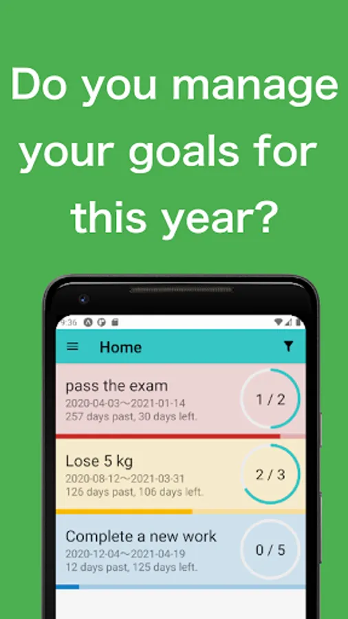 With Goal Supporter, you can set a deadline for your goal and set a notification to check it periodically!