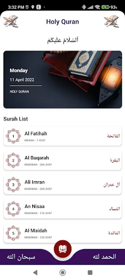 Quran for Android is a free Quran application for Android devices. There are many features under development. Please send us your feedback and feature requests and keep us in your prayers!