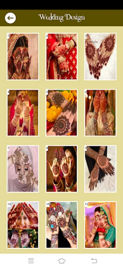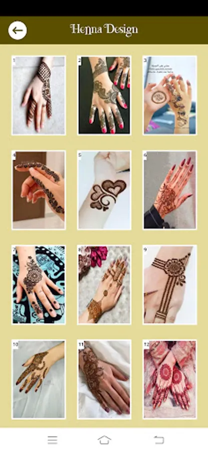 This app includes pakistani mehndi designs, indian mehndi designs, arabic mehndi designs, indo-arabic mehndi designs, african mehndi designs, moroccan mehndi designs, western mehndi designs, indo-western mehndi designs etc.