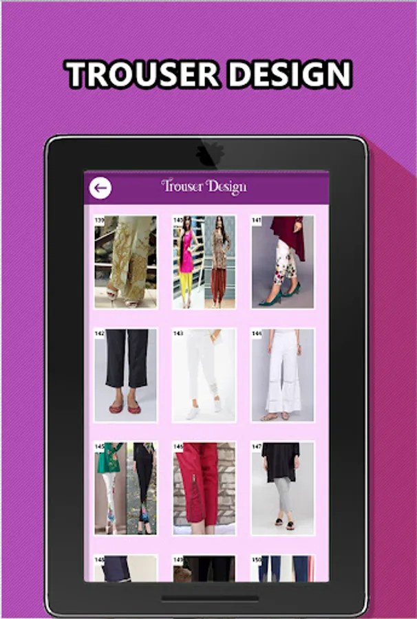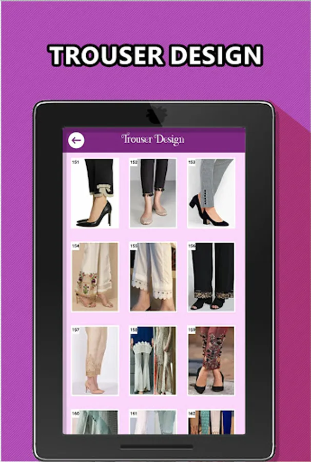 Discover the latest trouser designs with our app! Browse through a wide selection of ladies' trousers, including trendy options for girls and stylish choices for women. From casual to formal, our collection offers something for every occasion. Explore the latest fashion trends and find your perfect fit for 2023!