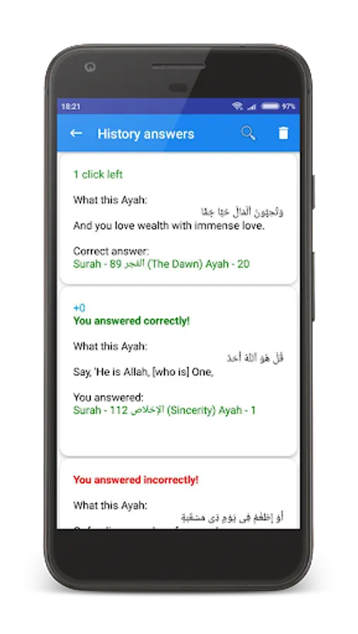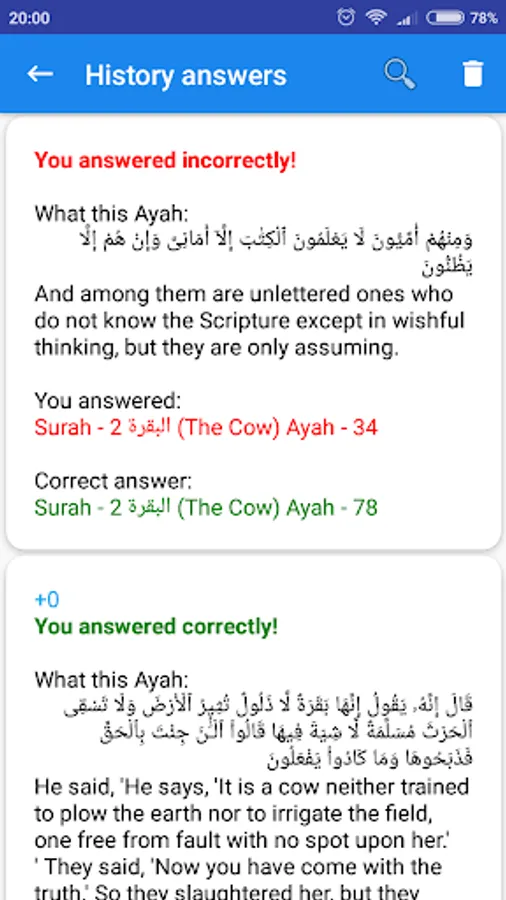 There is also a "History answers", may see what Ayats you answered and the ability to share it.