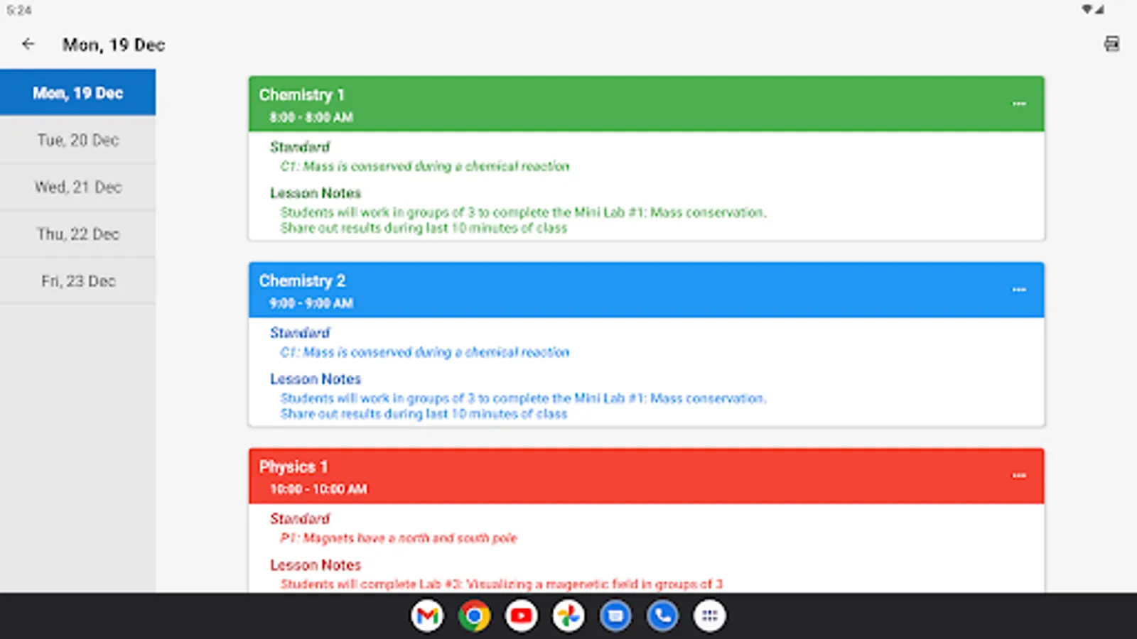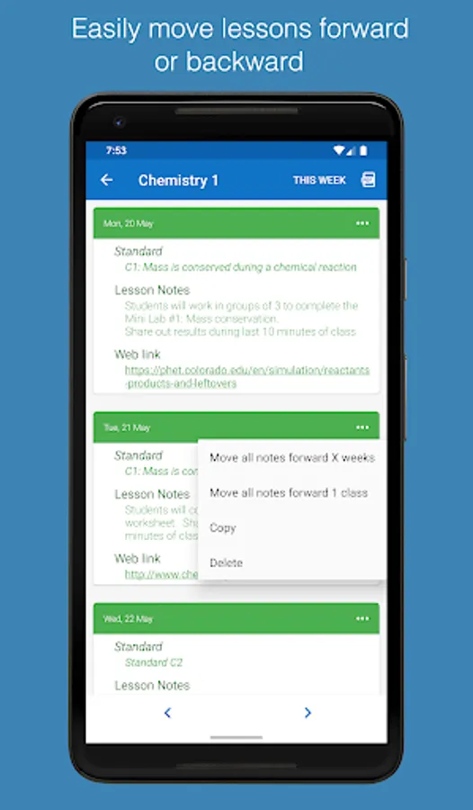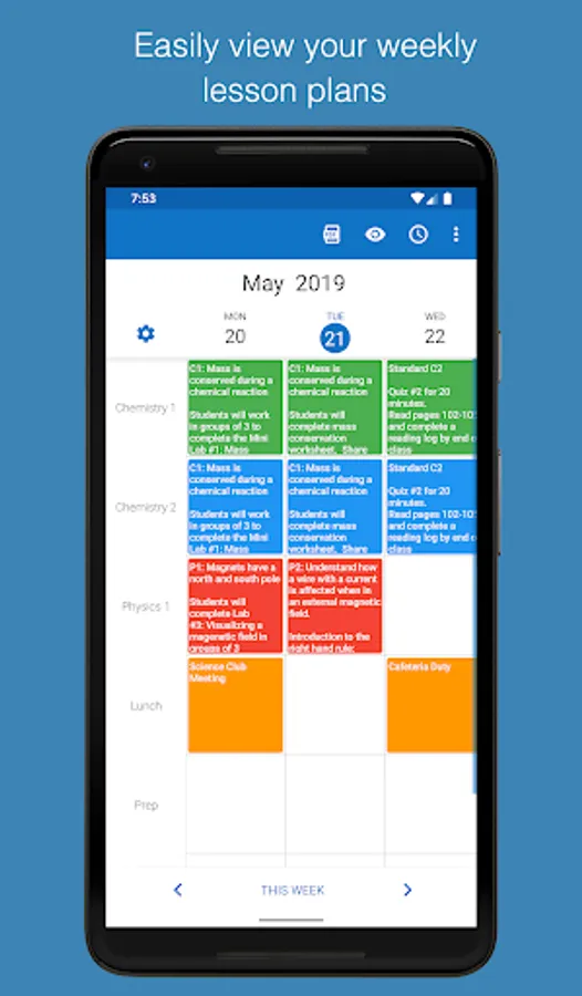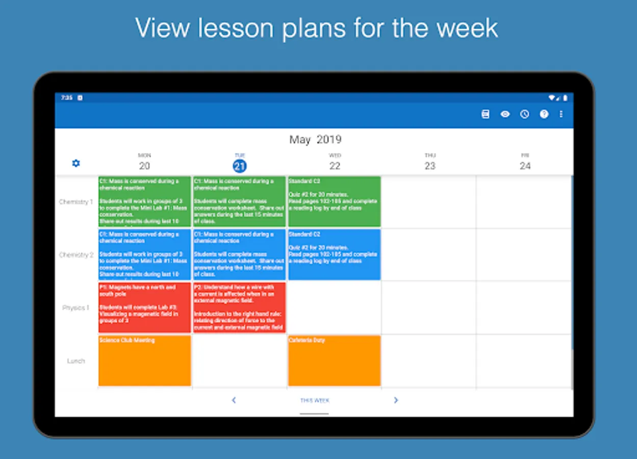 Class Planner allows teachers to easily keep a record of their lesson plans on a mobile device or Chromebook.