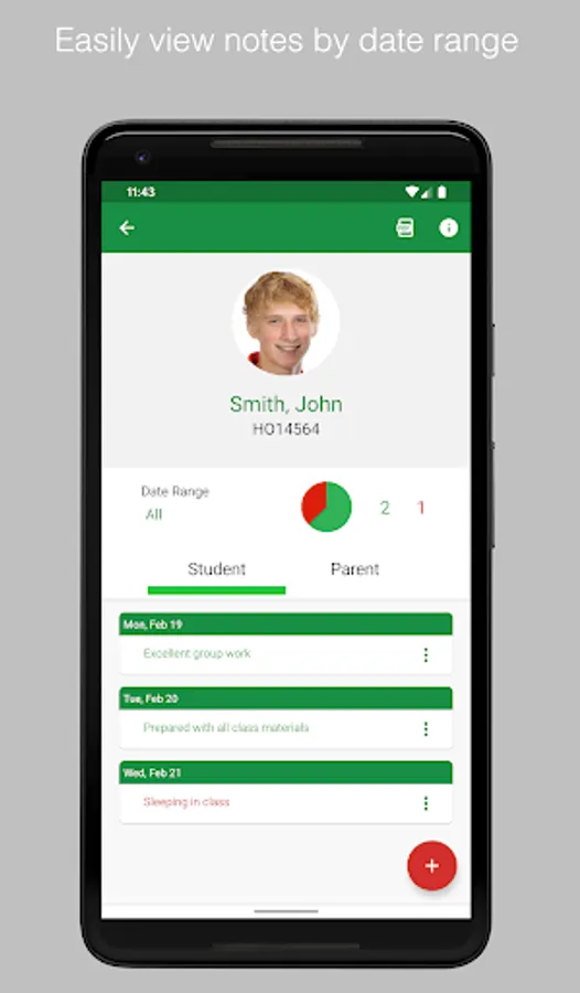 • Track positive and needs improvement notes