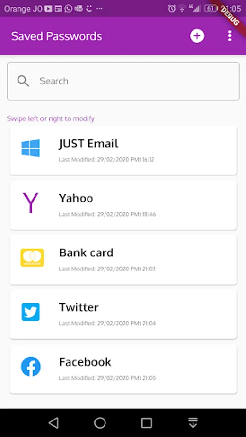 OnePass app used to safe all your passwords locally where you can retrieve them using Biometric Authentication or your own saved PIN Code.