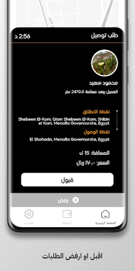 شريك جاي - JAY` Captain application to deliver orders from one place to another. The passenger gets the order from the merchant and sends it to the customer's site. The driver has the option to accept or decline the offer
