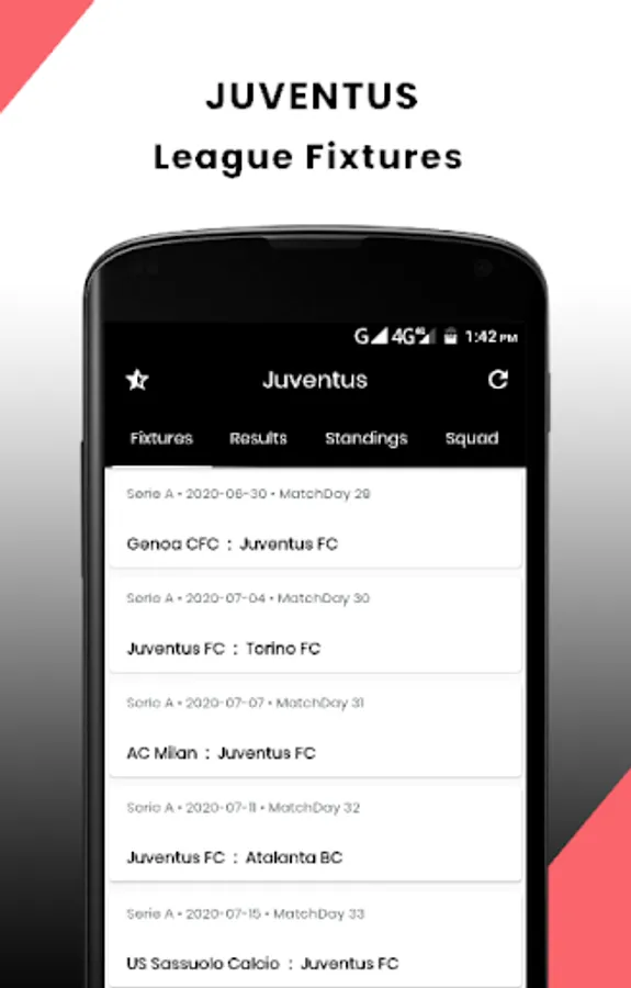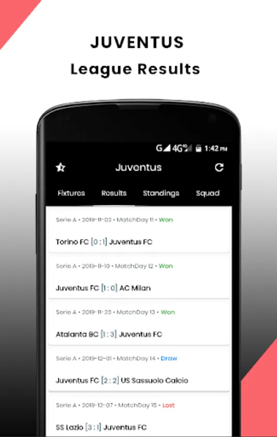 For ease of use, this app can even work offline in case you want to check Juventus fixtures and results.
