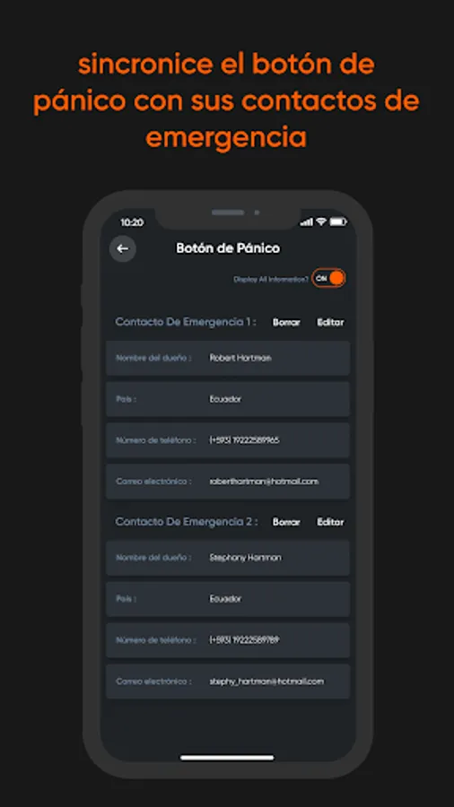 - Emergency contact configuration, Panic Button installed on your motorcycle.