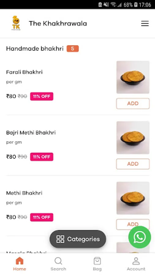 E-commerce mobile application for Handmade bhakhri, Healthy superfood khakhra, Flavor khakhra